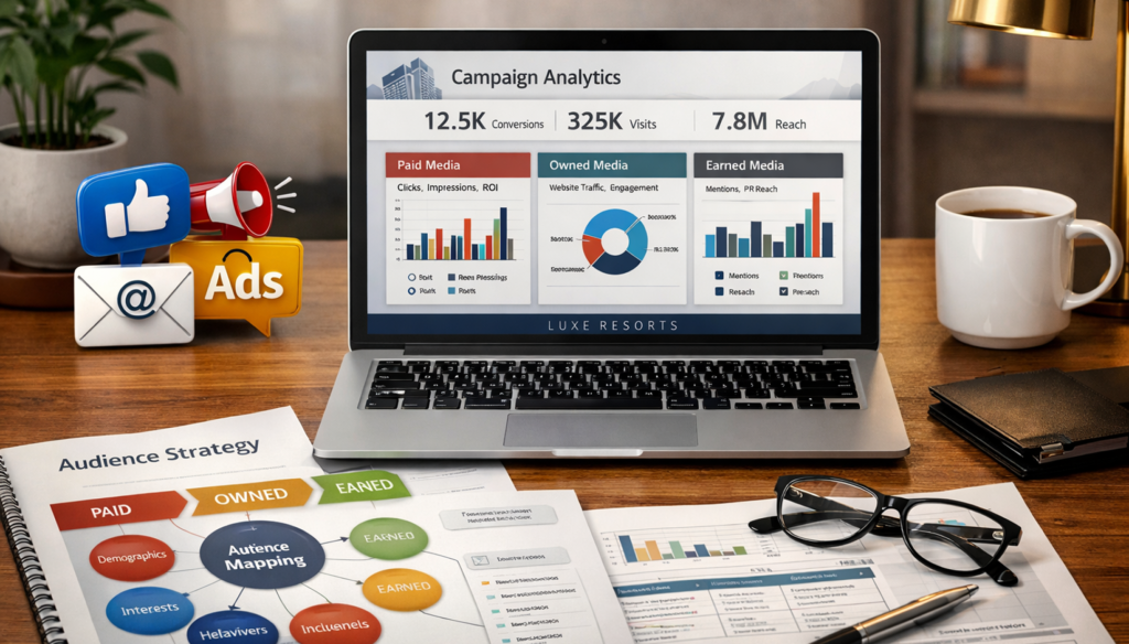 Alongside branding and design, we provide communications support across paid, owned, and earned media. This includes a strategic communications plan identifying audiences, key messages, channels, and campaign tools to support successful hotel openings or brand repositioning. Ongoing implementation support is available upon request.